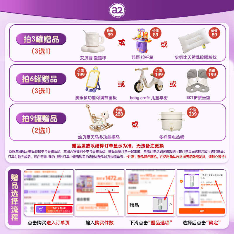 自营 6个月宝宝 a2新升级紫白金版 900g 婴幼儿牛奶粉1段