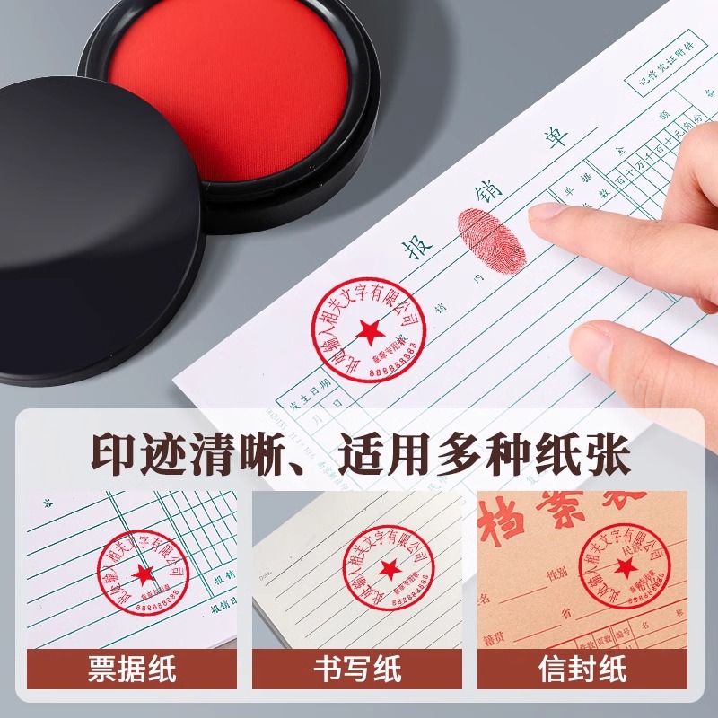得力印台红色快干印泥盒圆形可旋紧印台盖章印章盒印油硬泥按手印便携大号中号小号速干蓝色印尼办公用品财务