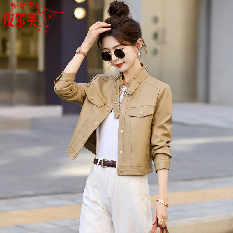 美拉德皮衣外套短款 高级感小个子宽松机车夹克上衣 女2024春秋爆款