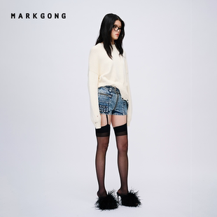 气质高级流行独特米色圆领破洞套头针织衫 设计感时尚 MARKGONG