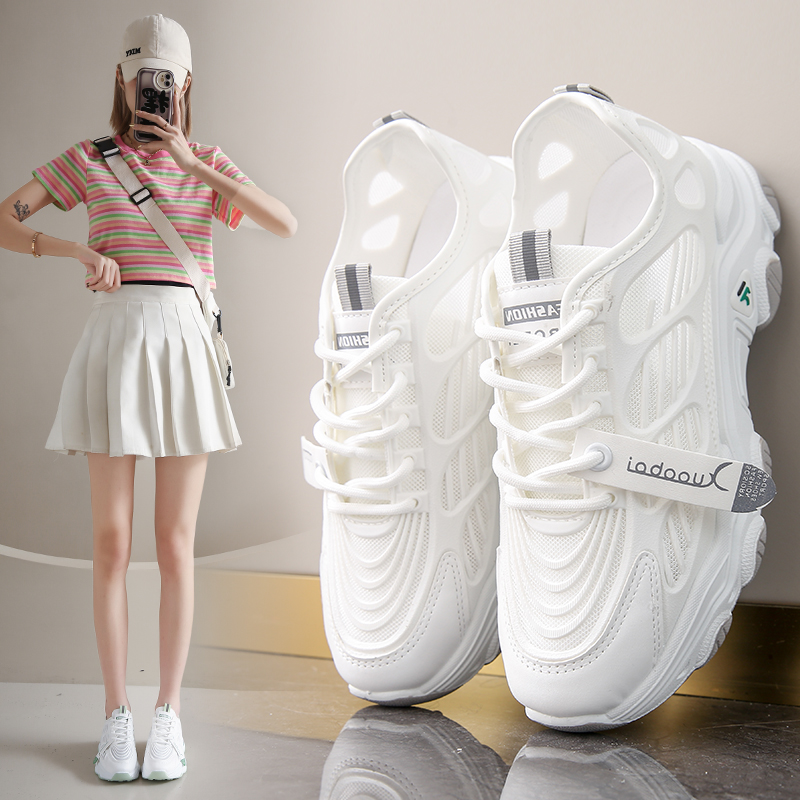 运动增高休闲网面厚底板鞋 新款 透气百搭 女2025年秋季 贝壳头小白鞋
