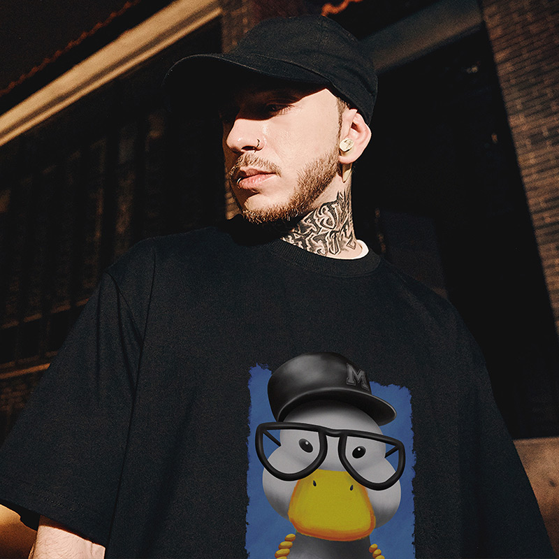 情侣圆领纯棉半袖 t恤街头大码 潮流 卡通鸭子印花短袖 300克重磅美式