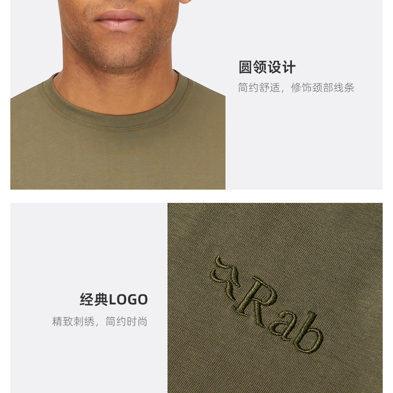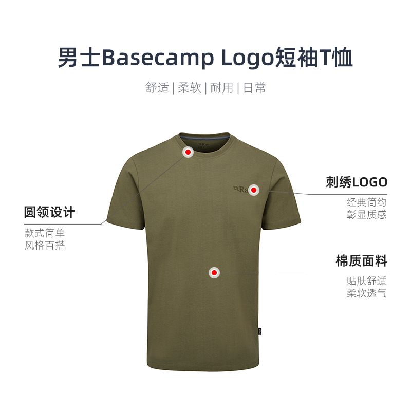 QCC RAB睿坡Basecamp 柔软棉质吸汗T恤 纯色圆领短袖 Logo男士