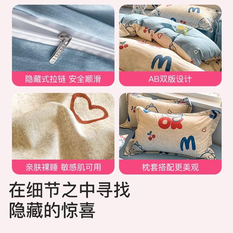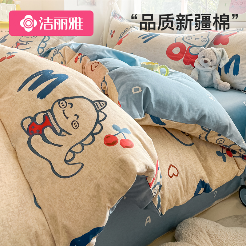 洁丽雅纯棉被套单件100全棉被罩150x200单人被子1.5米被单200x230