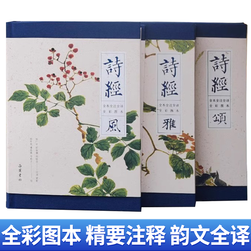 译注 详尽赏析传统文化书籍 诗经 诗经原著完整版 给孩子 原文译文注释插图 现货 全3册风雅颂三卷 岳麓书社 诗经注音版 正版