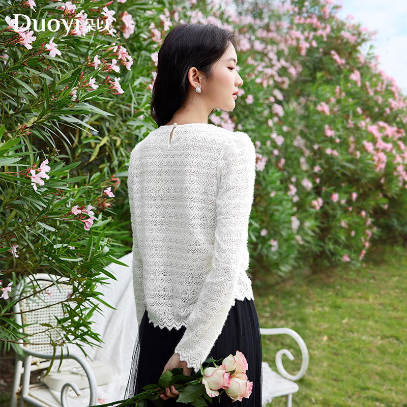 重工蕾丝花边娃娃领衬衫 上衣 女秋冬设计感小众宽松甜美刺绣雪纺衫