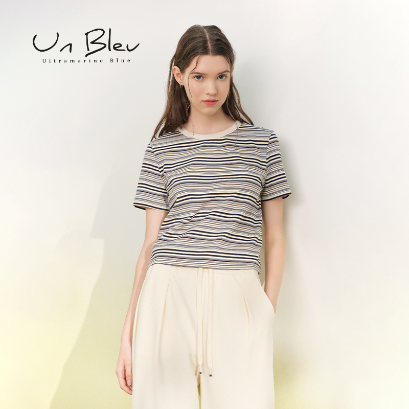 短款 UnBleu条纹t恤女短袖 气质潮牌女装 新款 学院风上衣 夏季