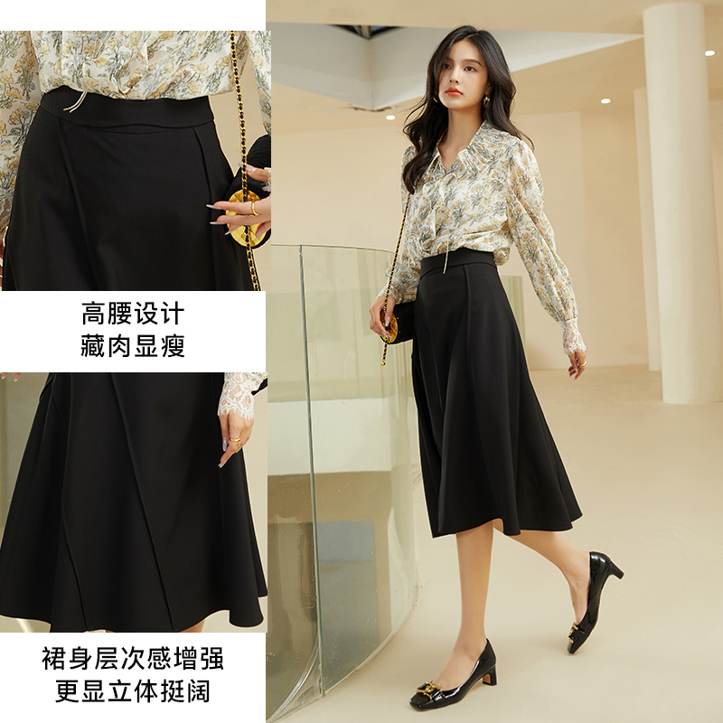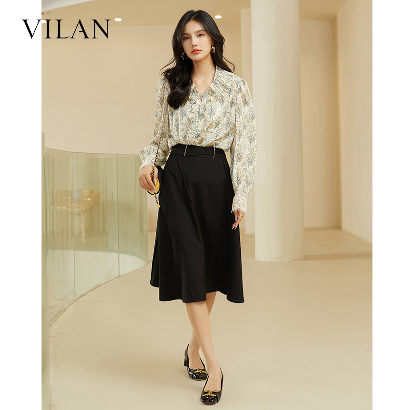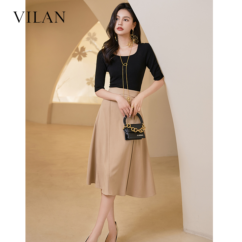 小个子 春a字伞裙大摆半身裙显瘦中长款 vilan 慧兰半裙女2025新款