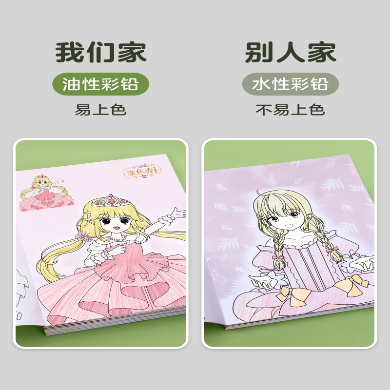 公主涂色书儿童画画本幼儿园绘画册图画工具套装 涂鸦填色绘本女孩