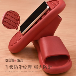 居家室内踩屎感防滑浴室洗澡红色拖鞋 婚庆拖鞋 女夏本历年2024新款