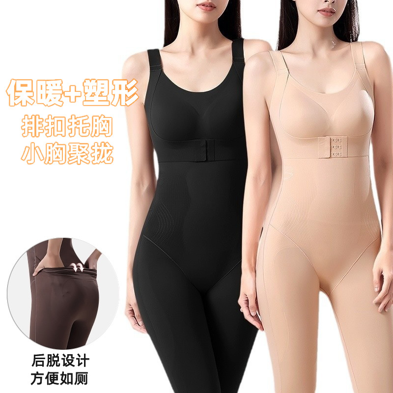 塑身衣 舒适长裤 秋冬保暖连体衣新款 收腹提臀塑形束腰前排扣后脱式