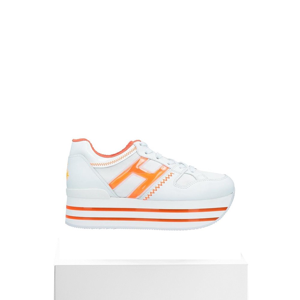 橘色圆头平板真皮衬 Hogan霍根女士高帮休闲鞋 1h可退 美国直邮