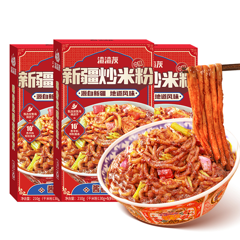 渣渣灰新疆炒米粉干米粉210g 3盒酱香风味中辣宵夜方便速食粉
