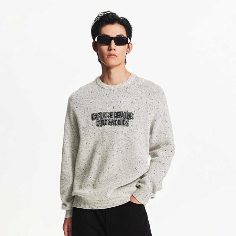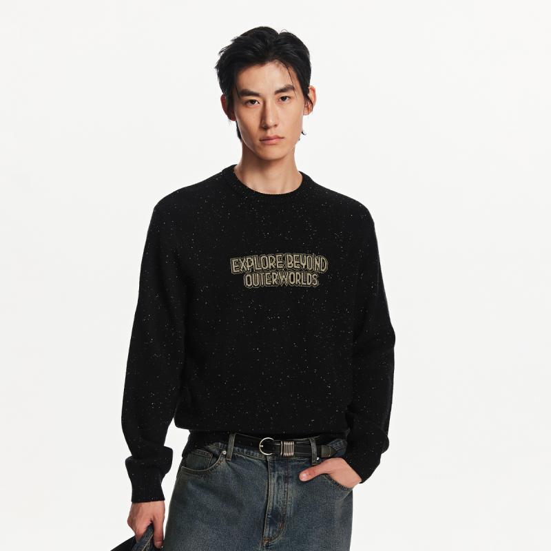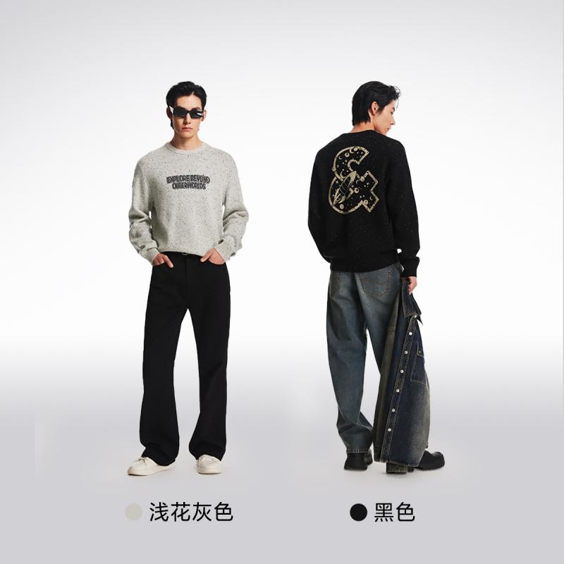 上衣男装 杰克琼斯秋季 彩点纱毛衣字母男士 宽松羊毛混纺针织衫 新款