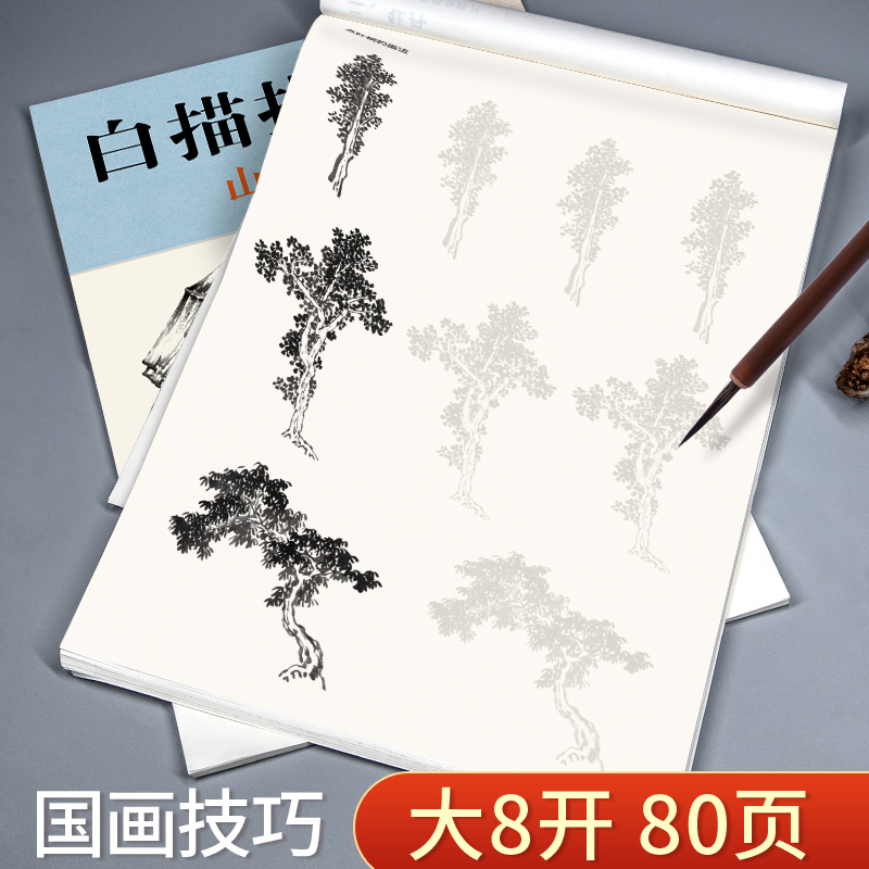 中国工笔画白描底稿临摹本 2022新书 白描描摹本山水树石 全集 画画自学零基础入门书教材超级线条浅印勾线名家底稿图大全美术 经典