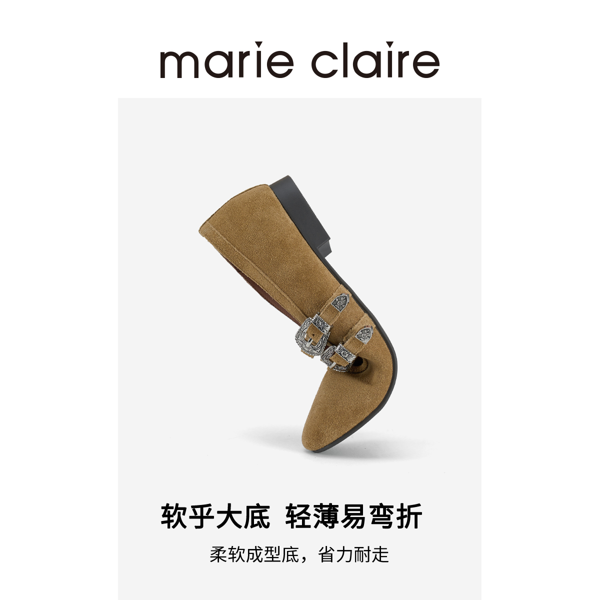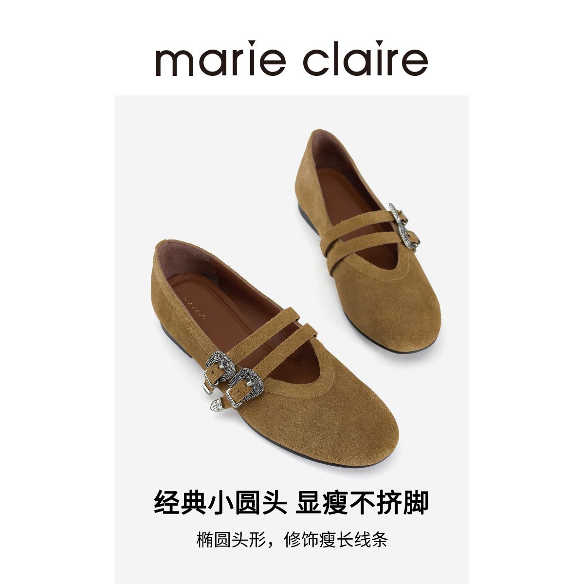 marieclaire女鞋 2025春平底复古玛丽珍单鞋 驼色哥特奶奶鞋 MC女鞋