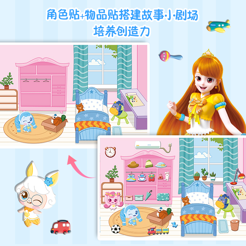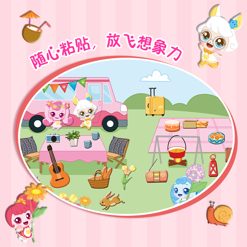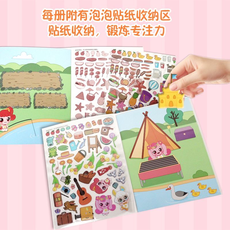 6岁益智贴纸玩具购物之旅快乐郊游美食之旅温馨小屋 奇妙萌可之魔法钥匙奇趣泡泡贴纸书3 儿童女孩主题场景随心粘贴 正版 任选