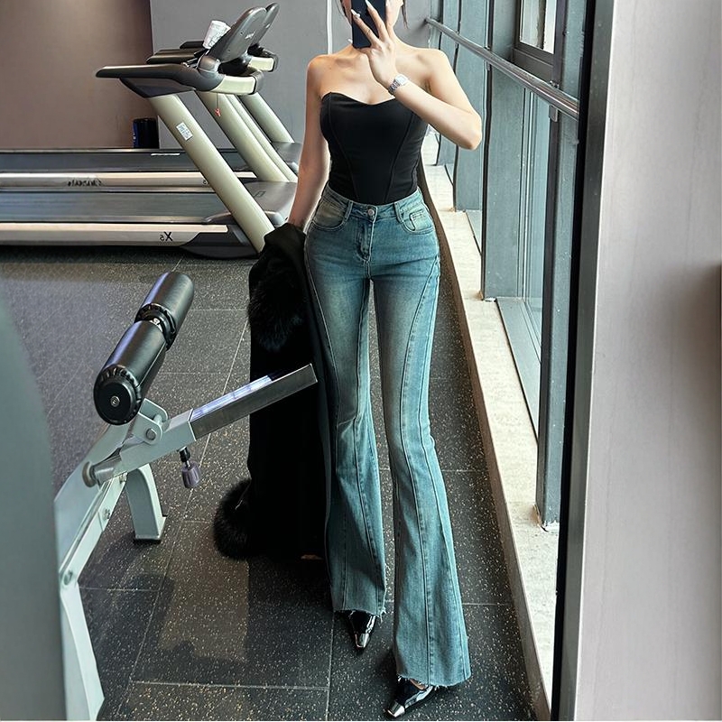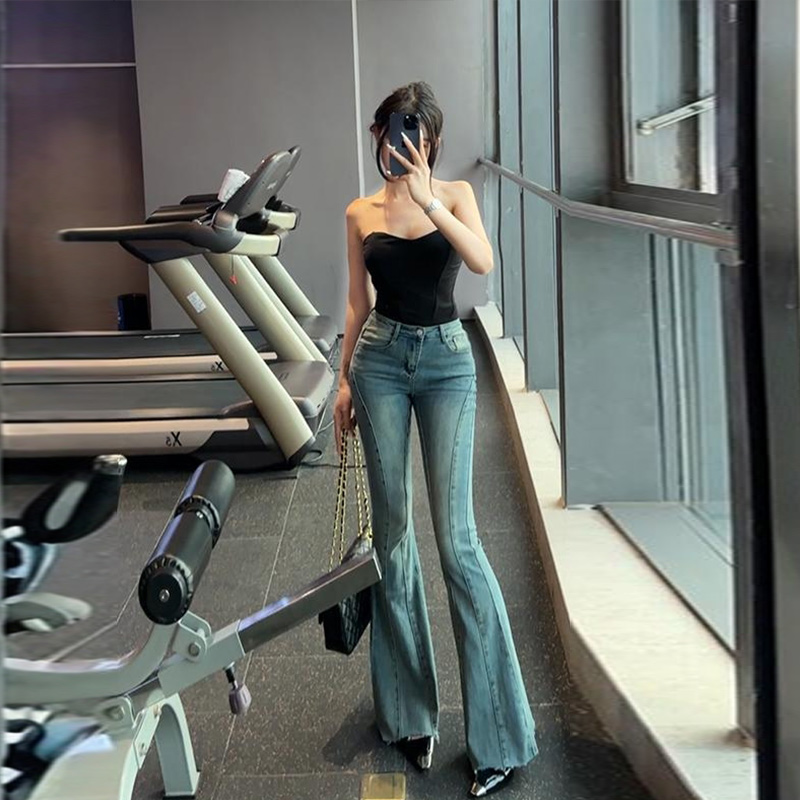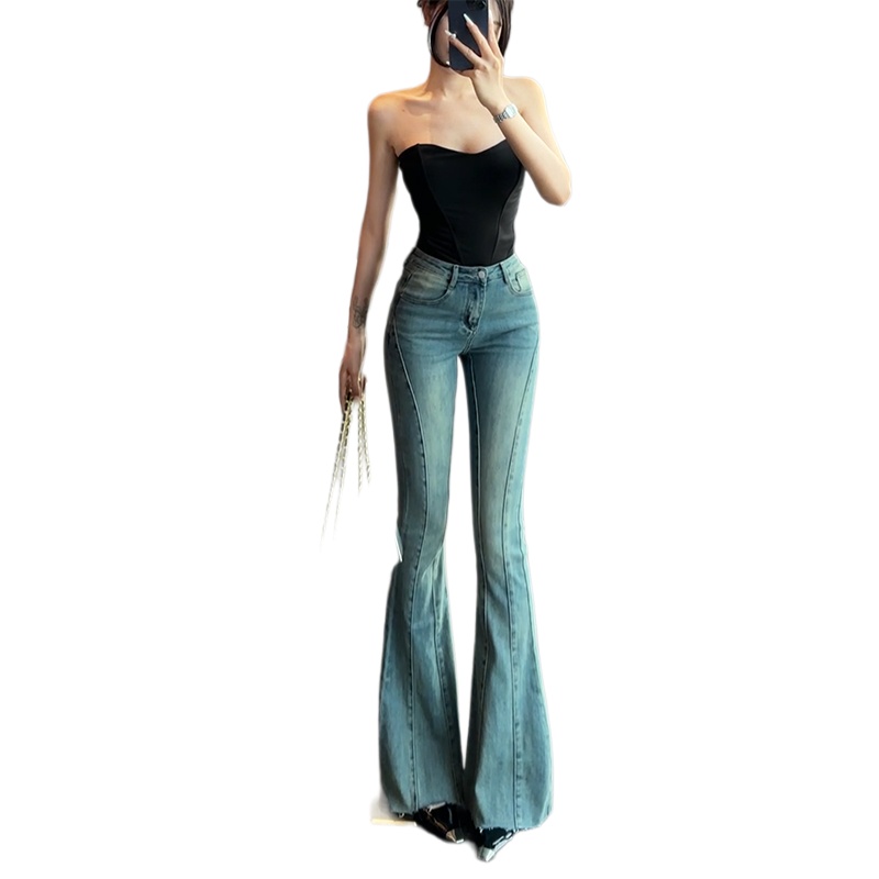 显瘦不贴腿直筒阔腿裤 女小个子大码 子潮 高腰微喇叭牛仔裤 春秋新款