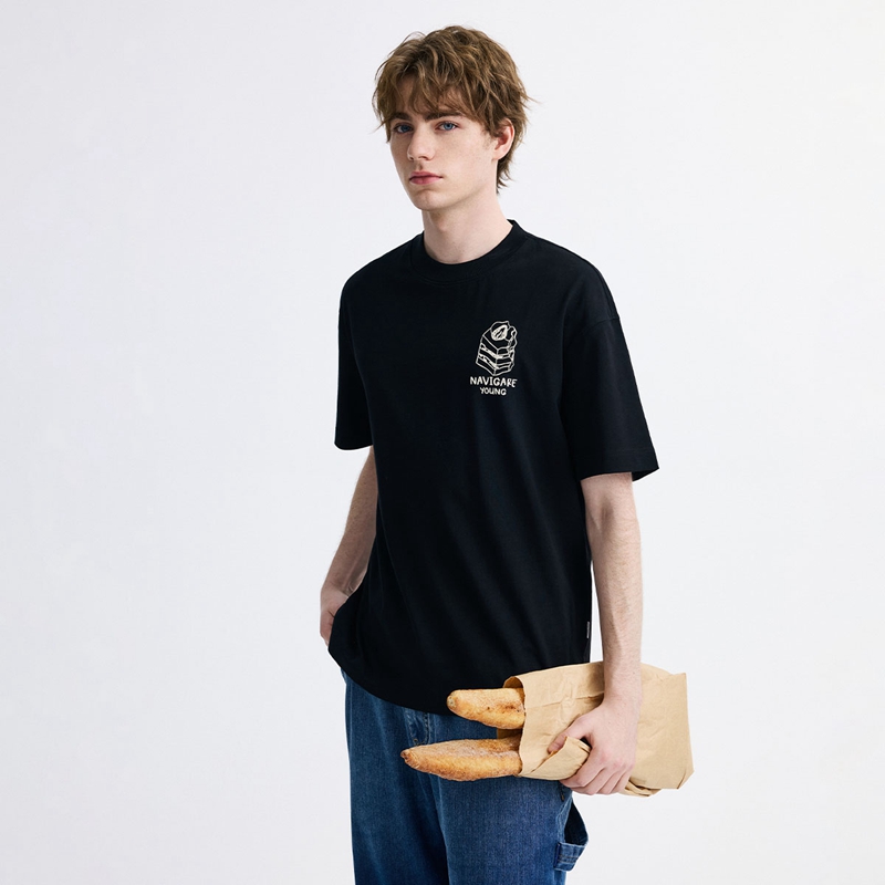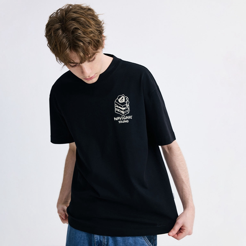 黑色短袖 Navigare意大利小帆船夏季 T恤男宽松休闲纯棉体恤 重磅T