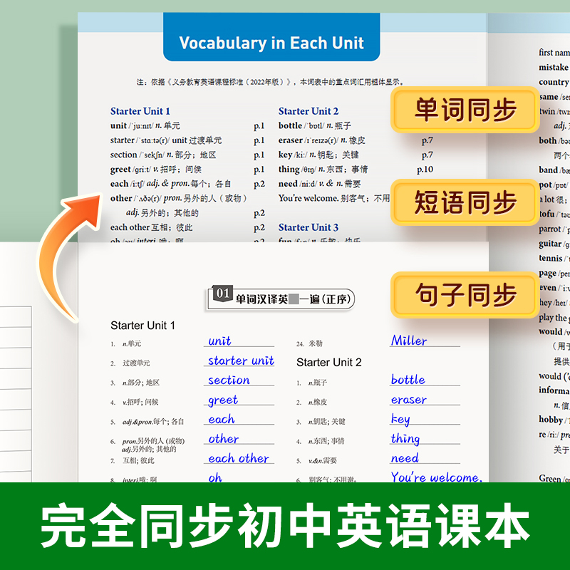 译林版 外研版 默写100初中英语人教版 单词短语句子同步默写训练每日一练英语默写神器单词听写默写练习本练习册 易蓓