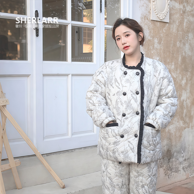 保暖设计感睡袍两件套睡衣 三层加厚加绒新中式 奢拉家居服法式 冬款