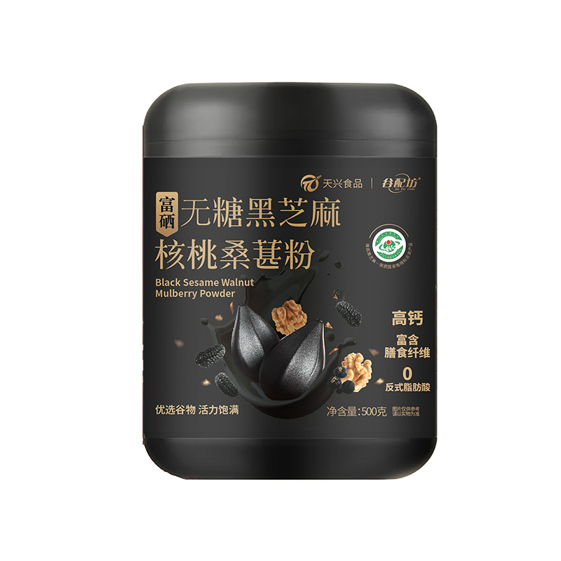 富硒无糖黑芝麻核桃桑葚粉方便冲调香浓即食500克罐装 谷物芝麻糊