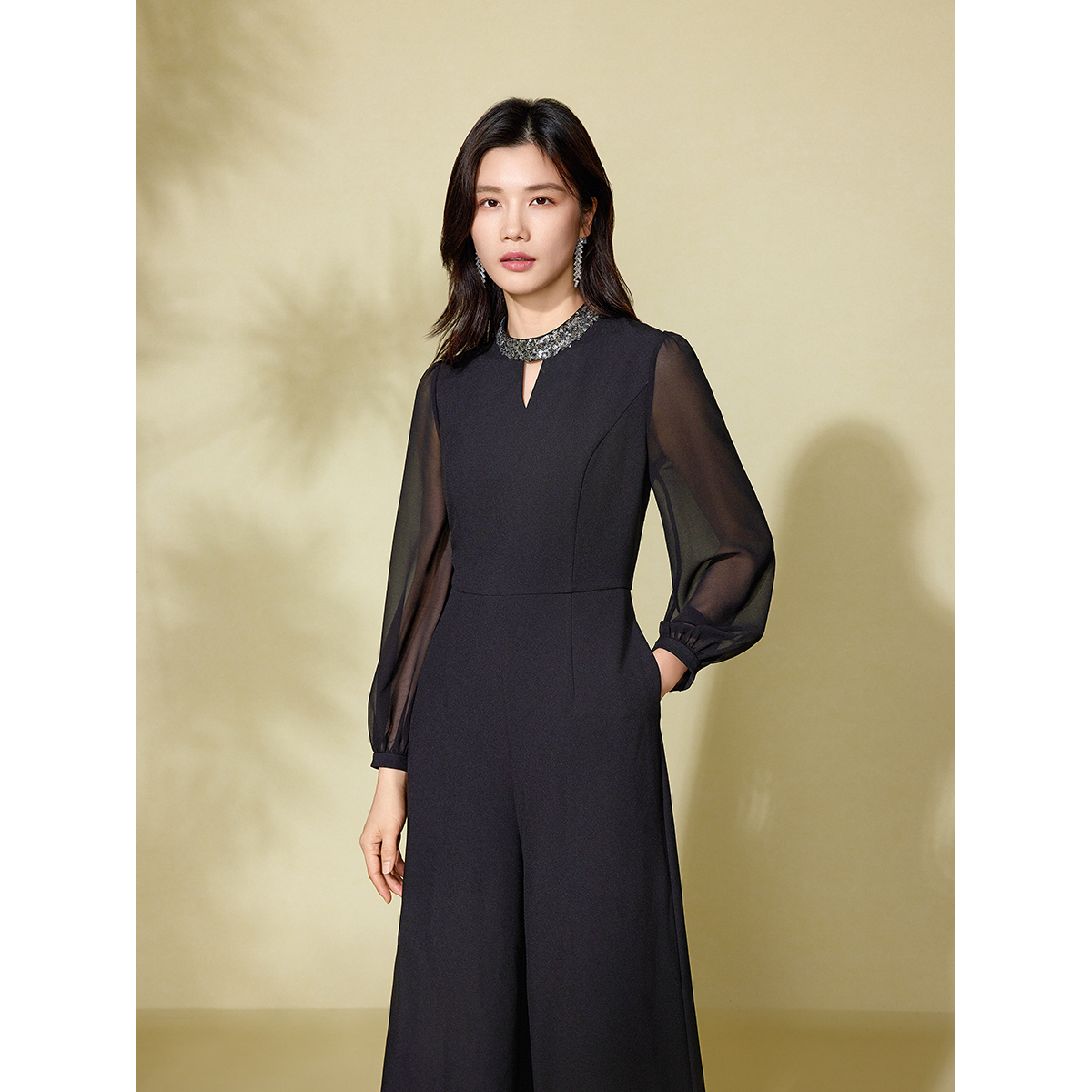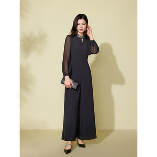 珠片小立领阔腿连体裤 新款 粉蓝衣橱2025秋装 女 轻奢风年会礼服