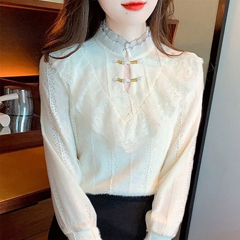 时尚 HM女装 新款 2025年秋季 休闲褶皱领棉质花边衬衣1270106 衬衫