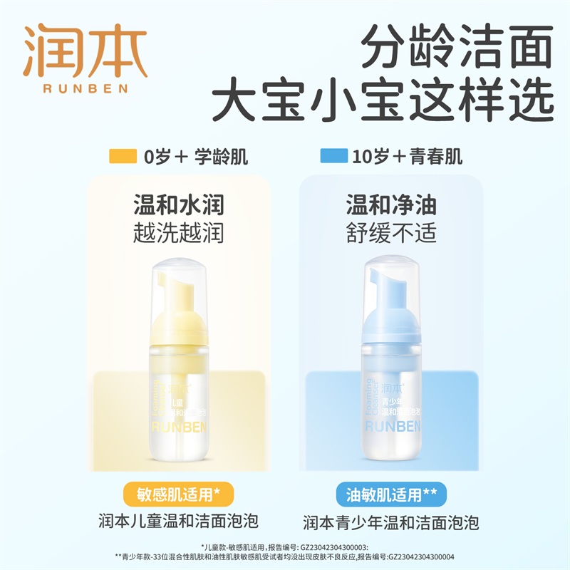 润本青少年洗面奶男女孩温和不刺激泡沫洁面学生专用洗脸便携装