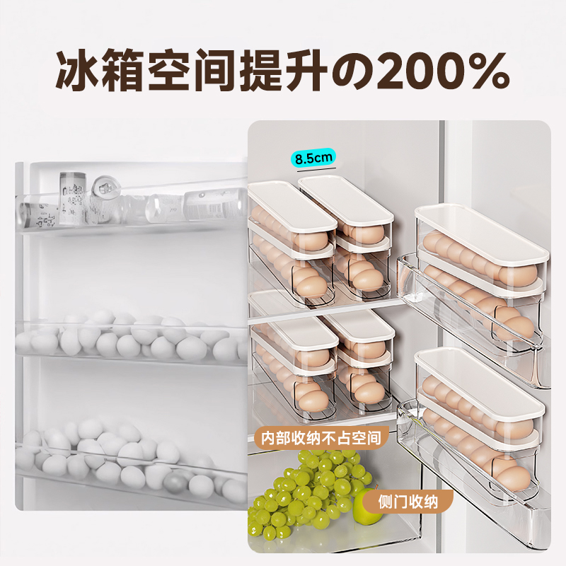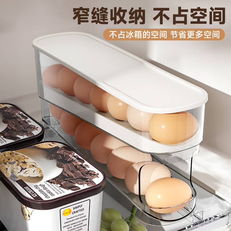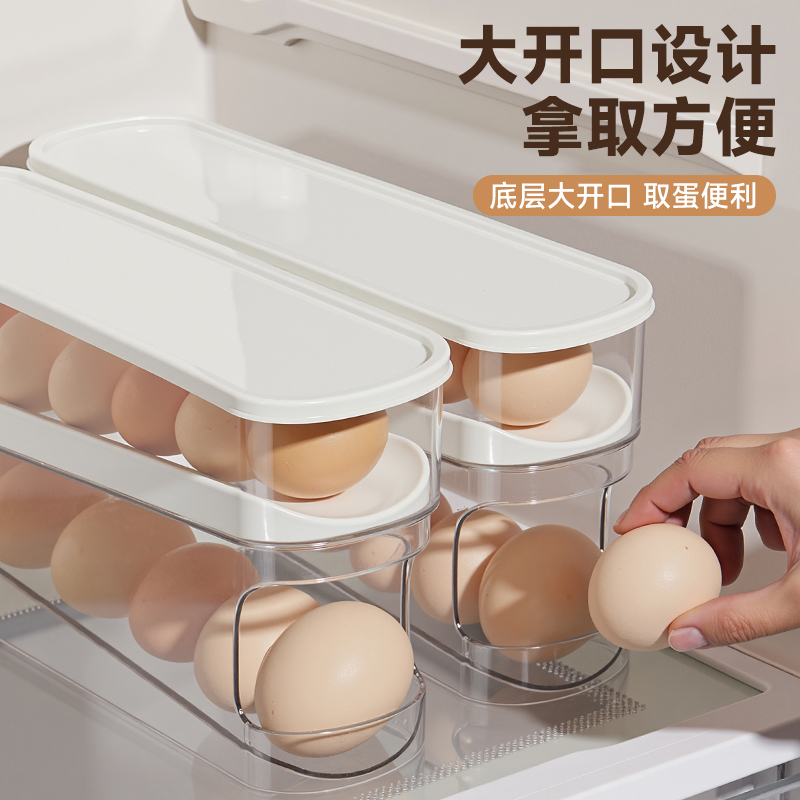 宝选鸡蛋收纳盒滚动式 存放盒自动补位冰箱用整理盒侧边蛋托双层架