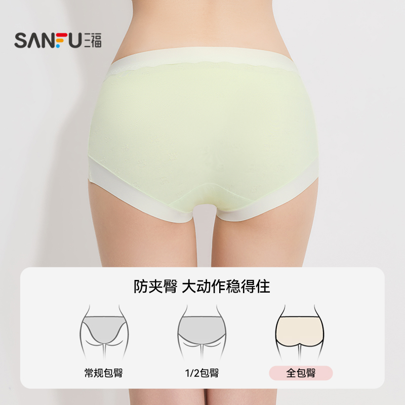 三福女低腰包臀内裤 女495837 少女花边印花柔软透气半平角裤