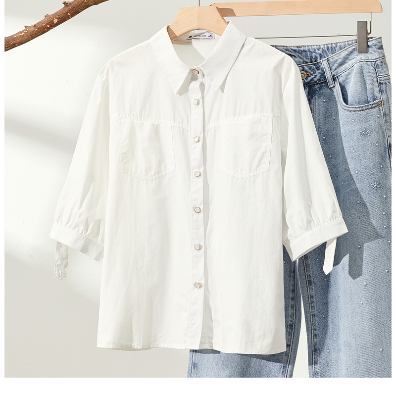 白色衬衫 通勤休闲长袖 木耳边立领衬衣女装 新款 上衣 25秋季 KBNE法式