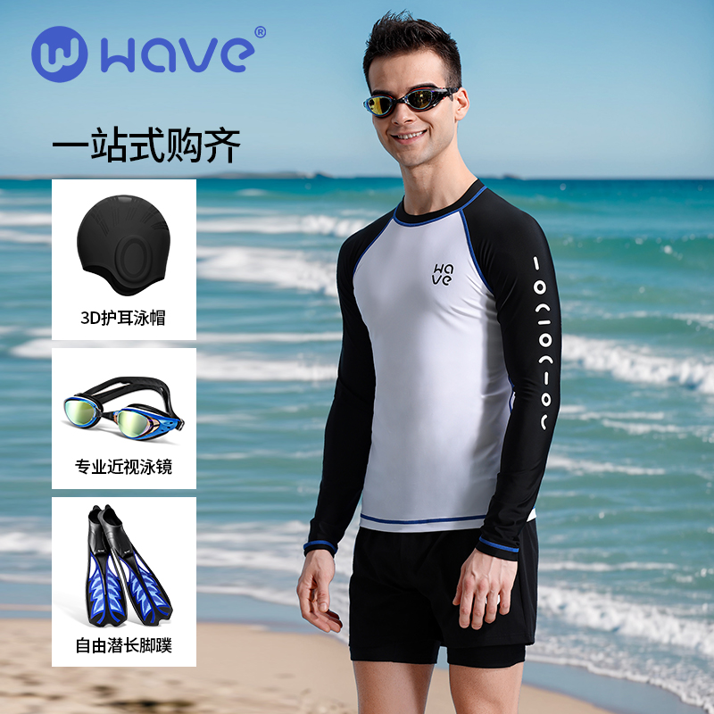 泳衣套装 游泳装 2025新款 沙滩裤 备男全套 防晒速干泳衣泳裤 wave男士