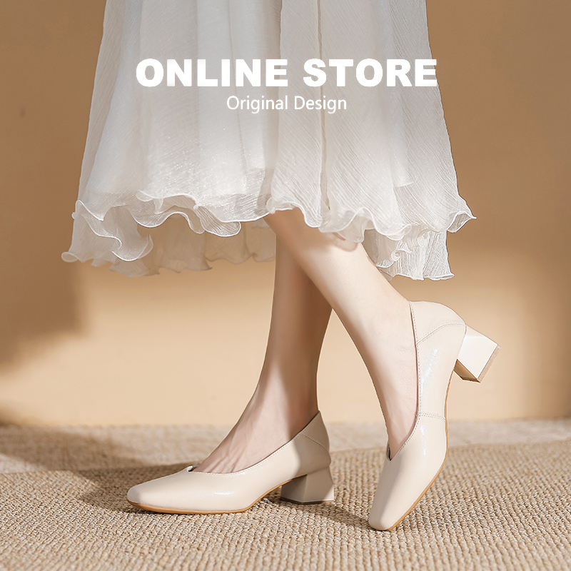 2025夏季 子女浅口单鞋 新款 中跟晚晚鞋 软底 超软法式 大码 方头妈妈鞋