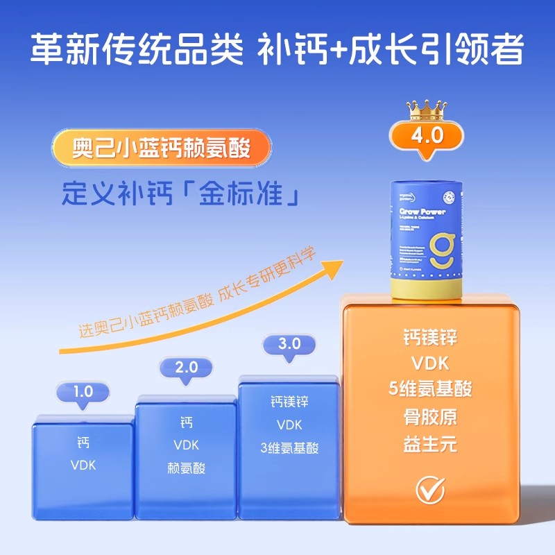 OG奥己小蓝钙活性赖氨酸液体钙儿童青少年生长钙30 3桶 自营