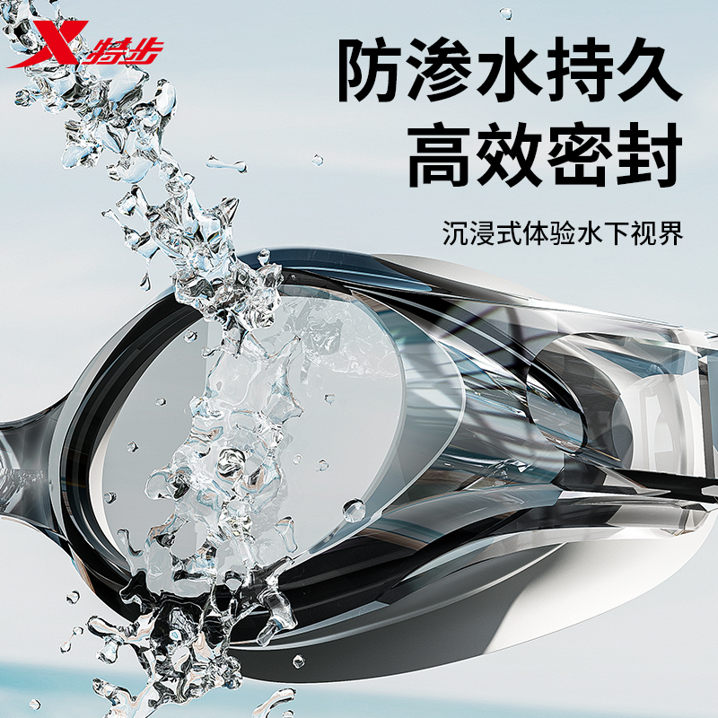 备 装 特步泳镜男款 高清防水防雾近视带度数专业游泳眼镜泳帽女套装