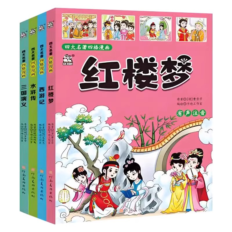 社 必读河南美术出版 中国四大名著四格漫画西游记三国演义红楼梦水浒传有声大字注音图文并茂四宫格彩图漫画形式 课外经典