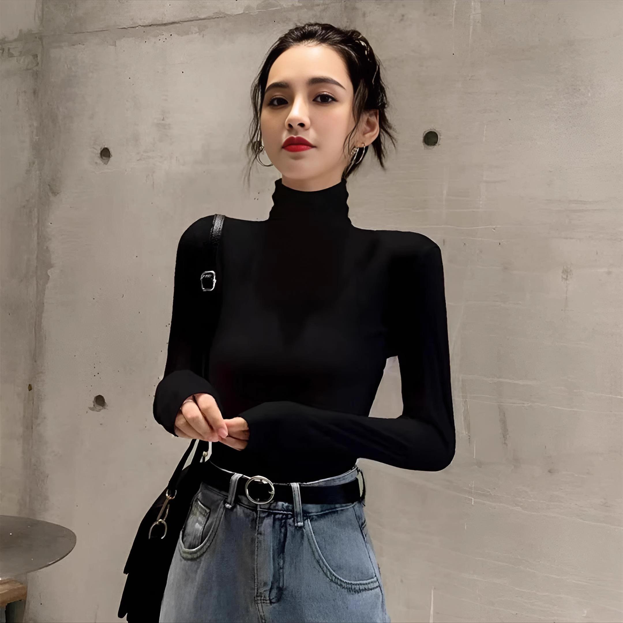 女 上衣堆堆领洋气显瘦打底衫 2025秋冬女装 百搭高领安哥拉红针织衫