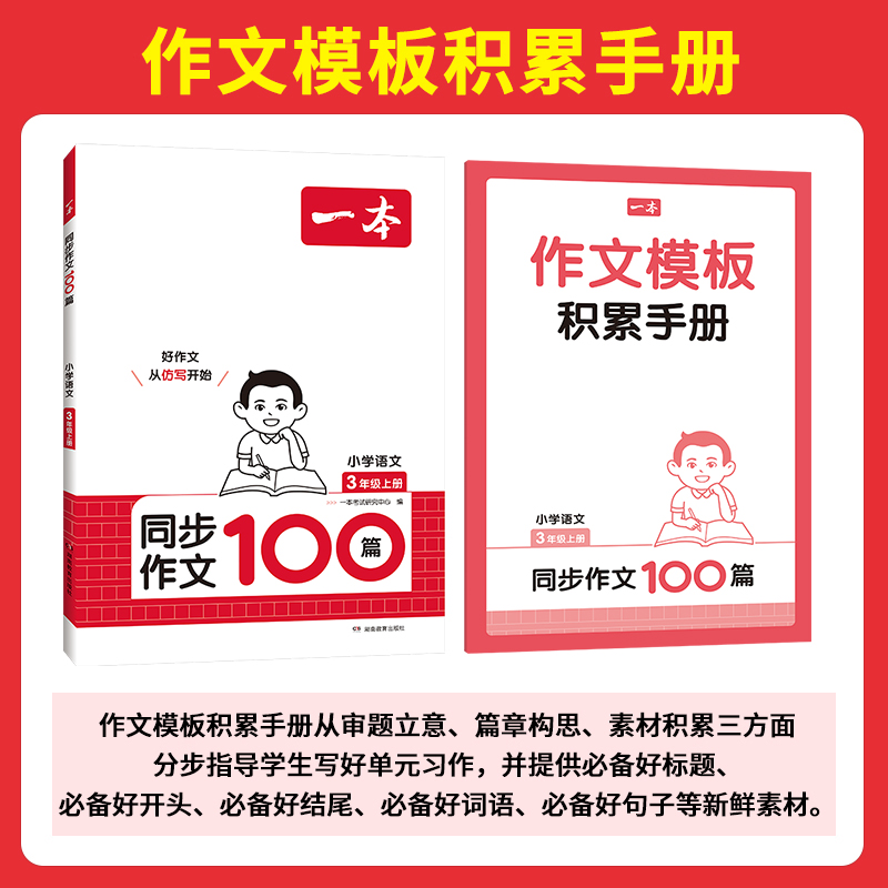 2025秋新版 一本小学语文同步作文二年级三年级四五六年级上册下册写作技巧人教优秀满分素材书模板积累手册范文大全阅读训练100篇