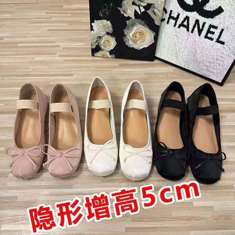 玛丽芭蕾舞单鞋 5cm2025轻便绸缎蝴蝶结新款 小个子内增高女鞋 韩版
