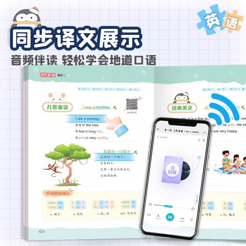 官方正版 一二三四年级小学生英语自然拼读趣味阅读课外书每日晨读美文每天十分钟有声伴读 小橙同学337晨读法小学英语同步人教版