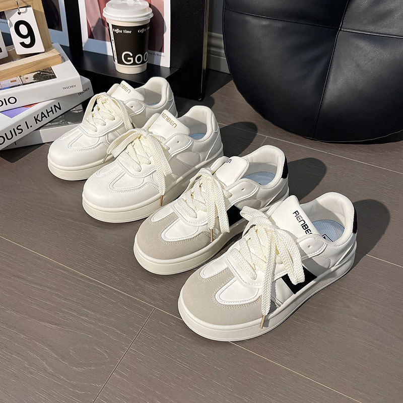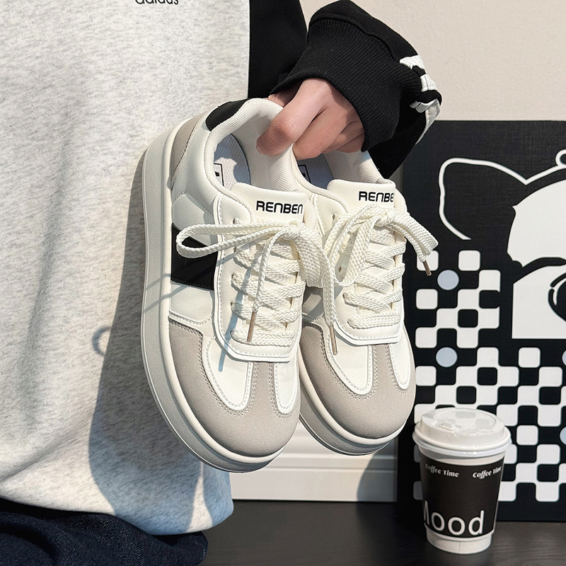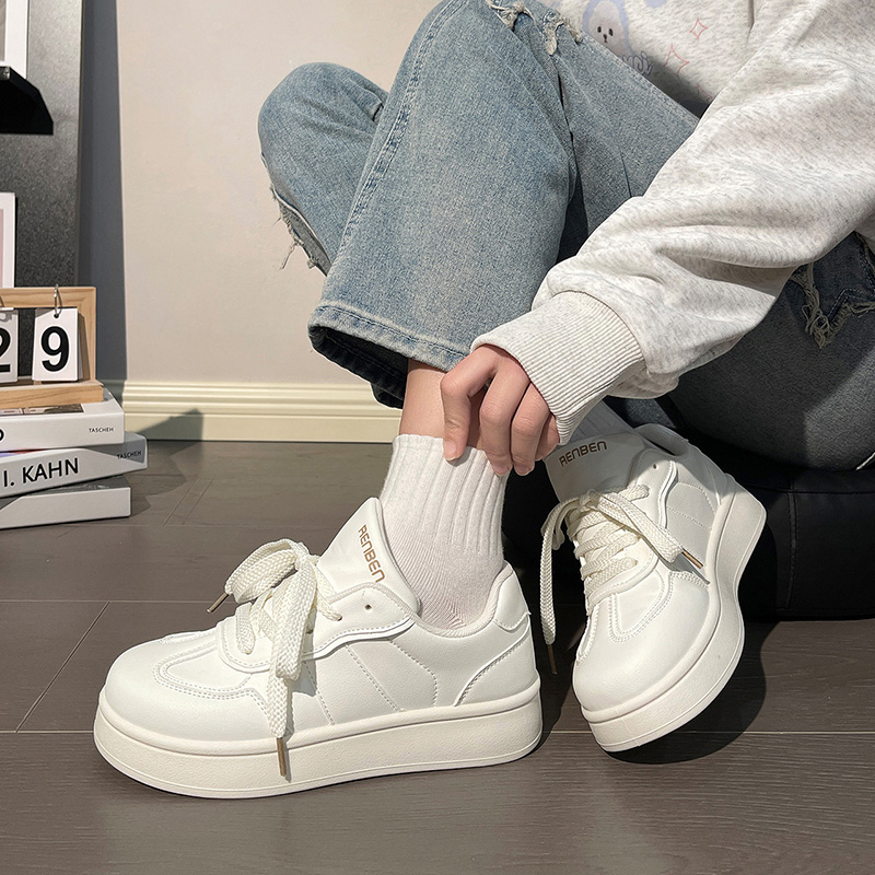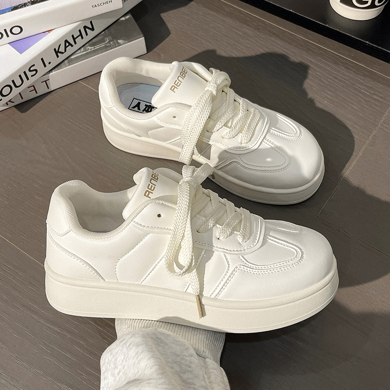 韩版 潮鞋 休闲鞋 小众厚底娃娃头女鞋 学生系带2025春新款 人本丑萌鞋