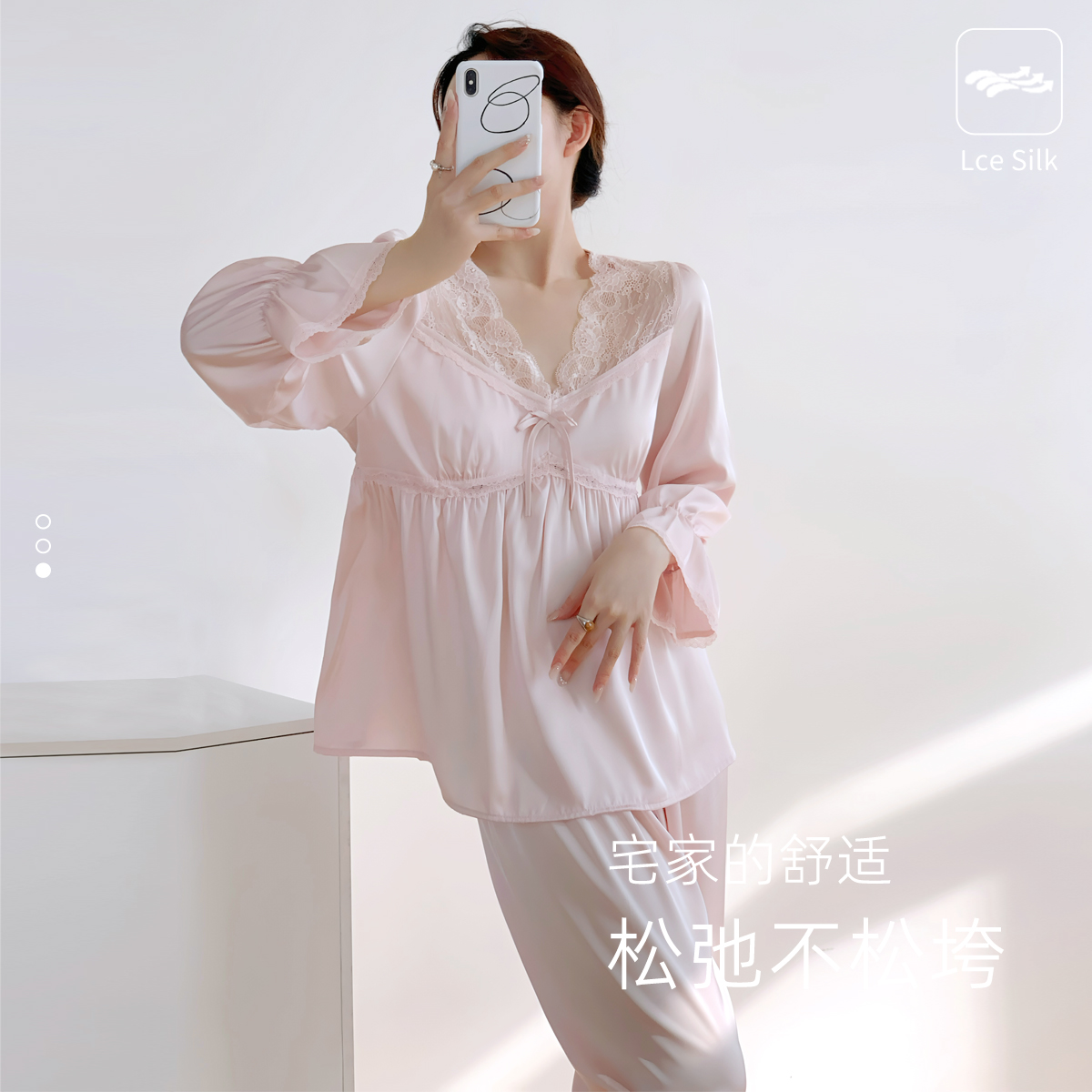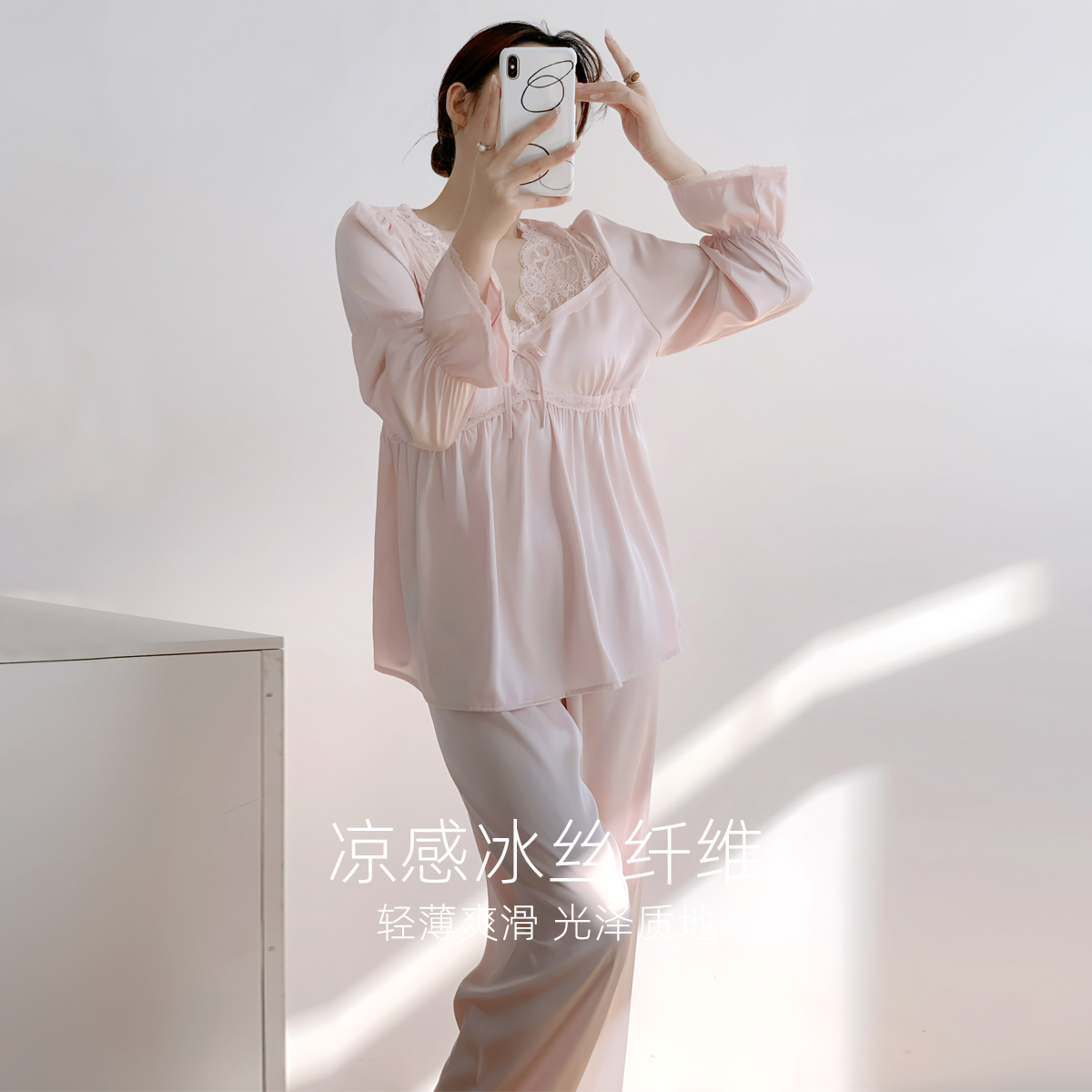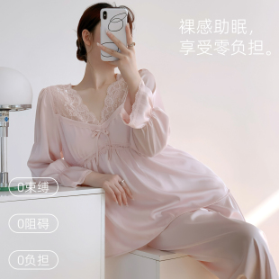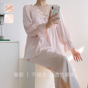 家居服带胸垫 冰丝蕾丝甜美宫廷风丝绸夏款 乐姿梦春秋季 睡衣女长袖
