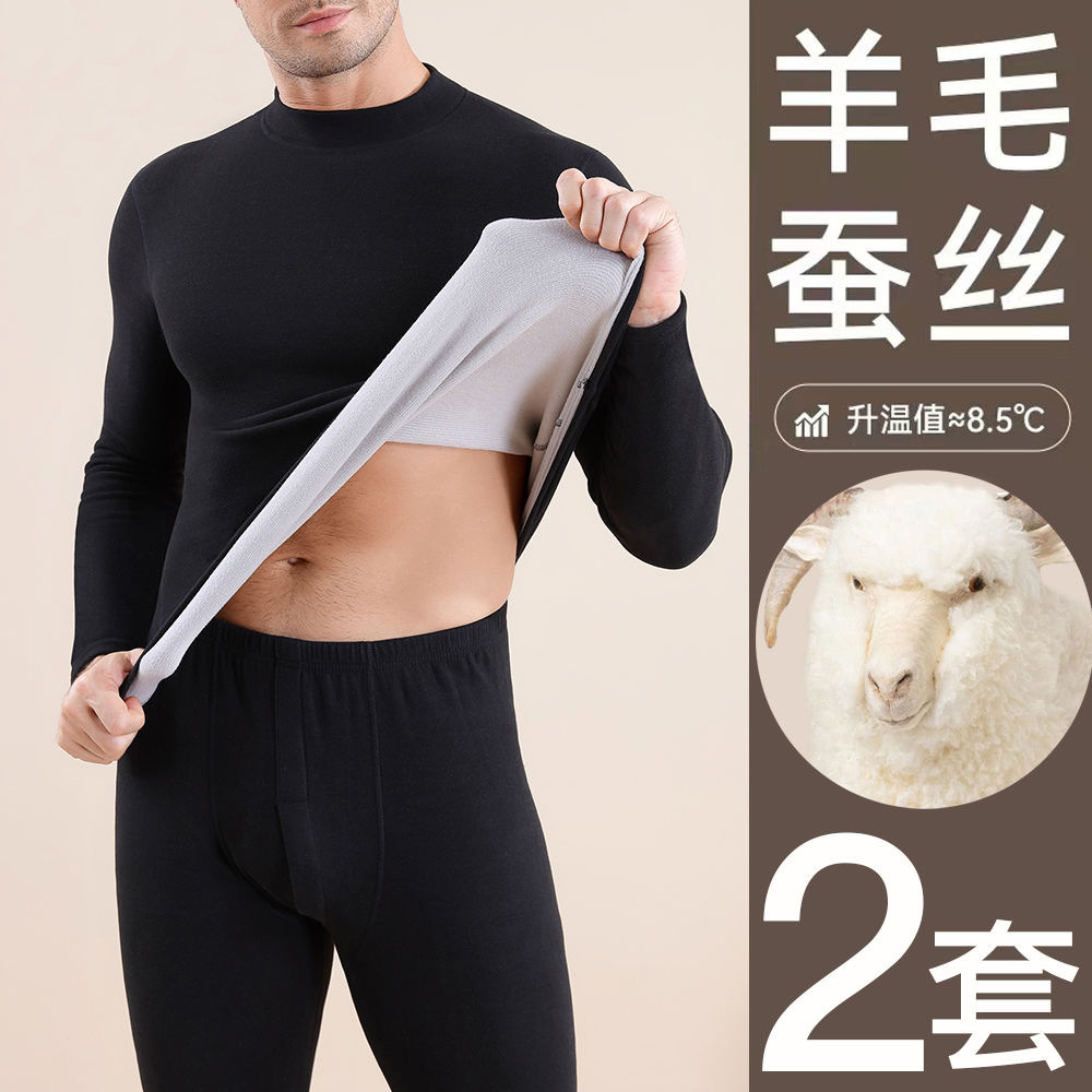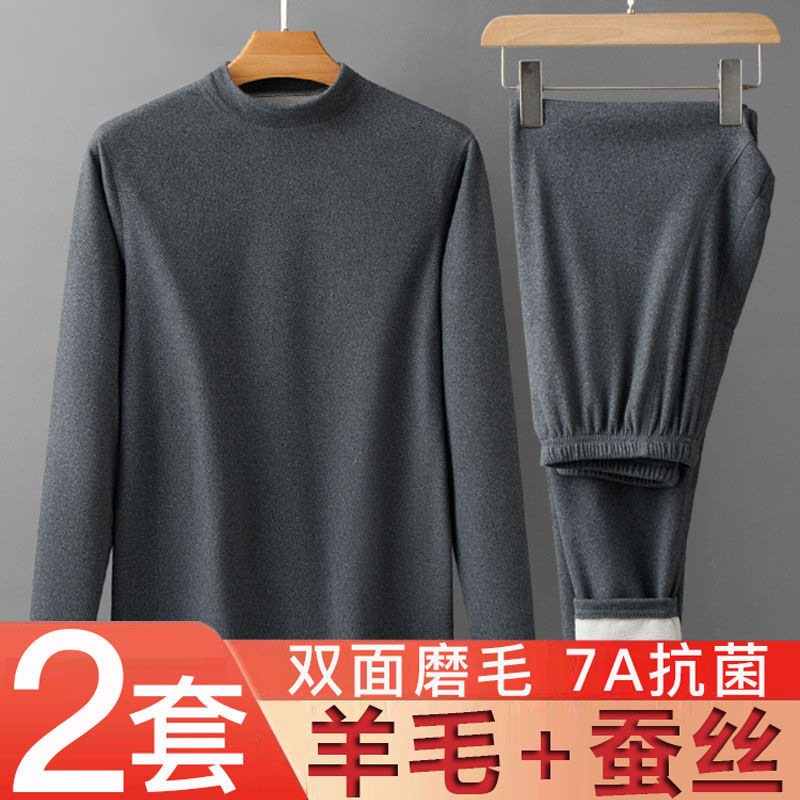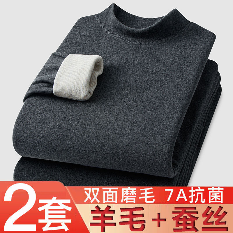 女圆领抗静电厚棉半高领秋冬 套装 三枪保暖内衣男士 纯棉秋衣秋裤
