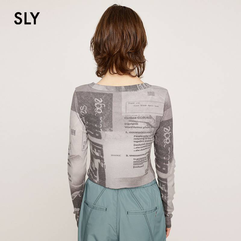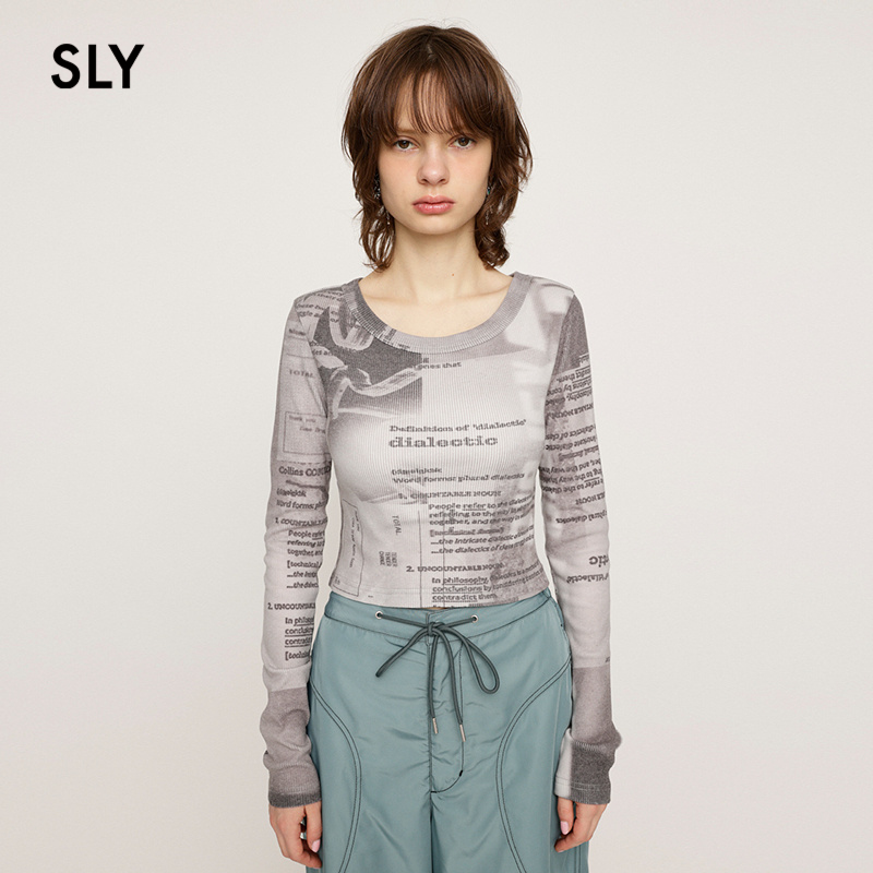 T恤女030HSA90 SLY 圆领长袖 甜辣Y2K欧美风拼贴印花修身 1480 新品