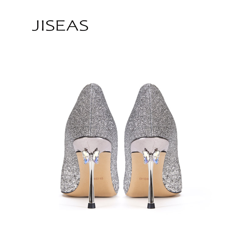 气质礼服不累脚亮片女士尖头婚鞋 真皮法式 女2025新款 JISEAS高跟鞋