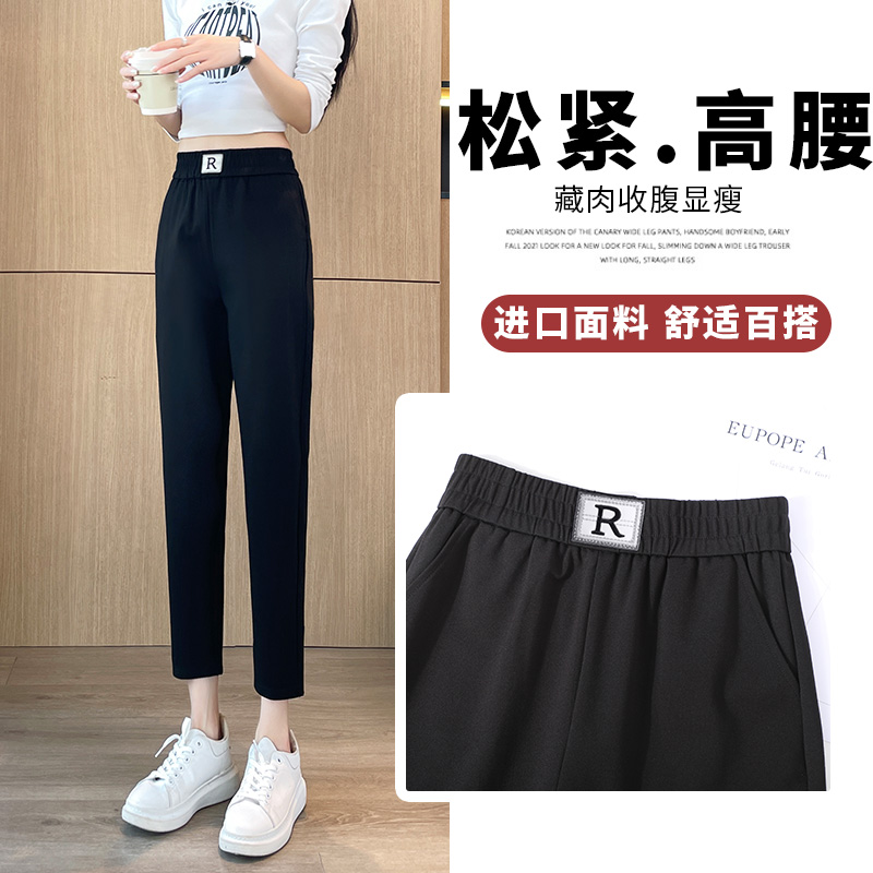 子女夏季 女裤 2025新款 宽松显瘦百搭西装 黑色九分高腰休闲哈伦裤 裤