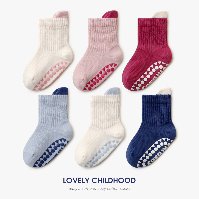 喜得瑞宝宝地板袜春秋纯棉纯色室内隔凉学步中筒袜男女童防滑袜子