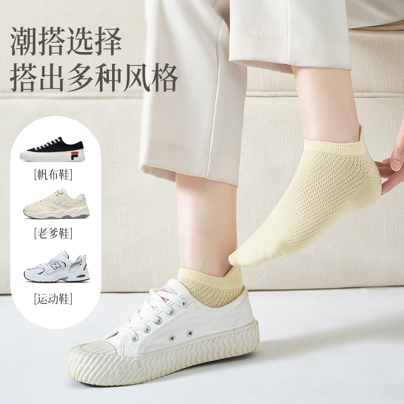 船袜女夏季 网眼运动吸汗透气低帮浅口提耳隐形袜女士白色短袜 薄款