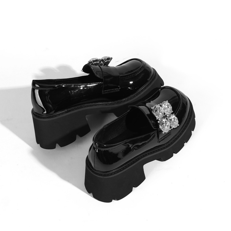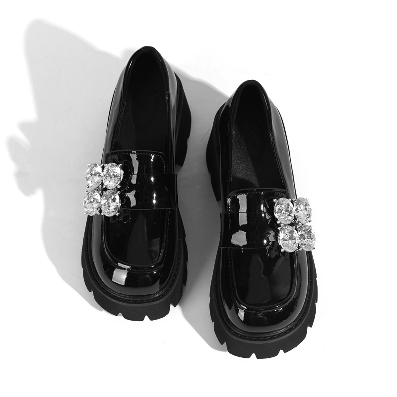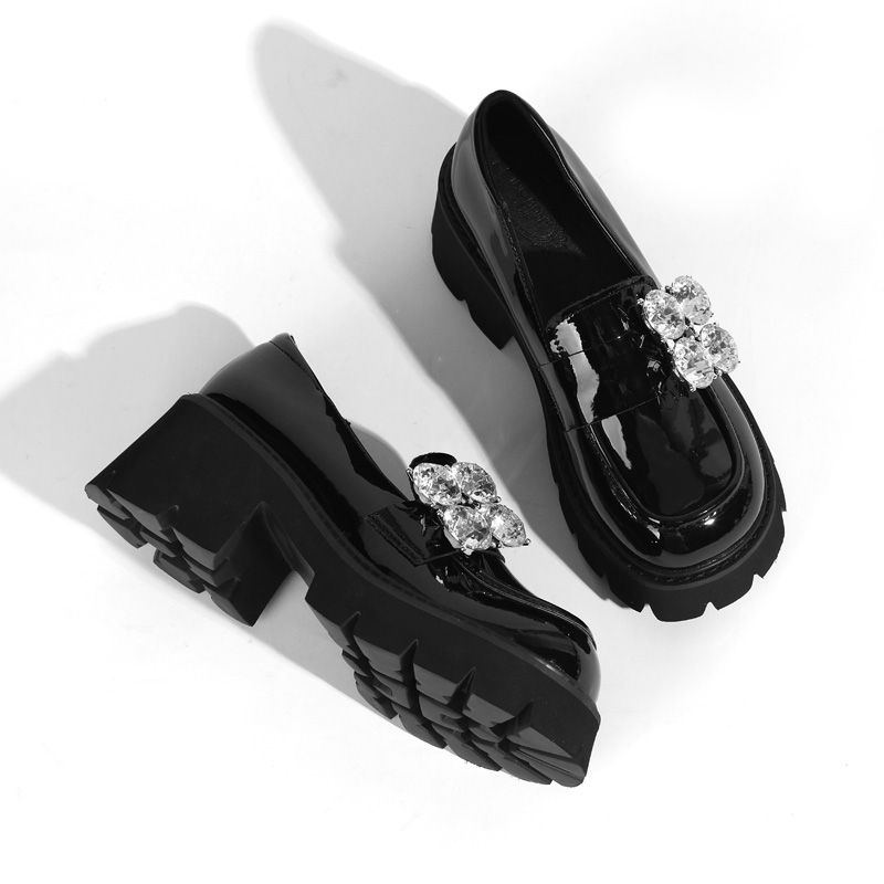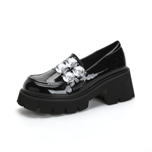 女鞋 显脚小皮鞋 41到43春秋新款 厚底水钻单鞋 2025粗跟高跟鞋 大码